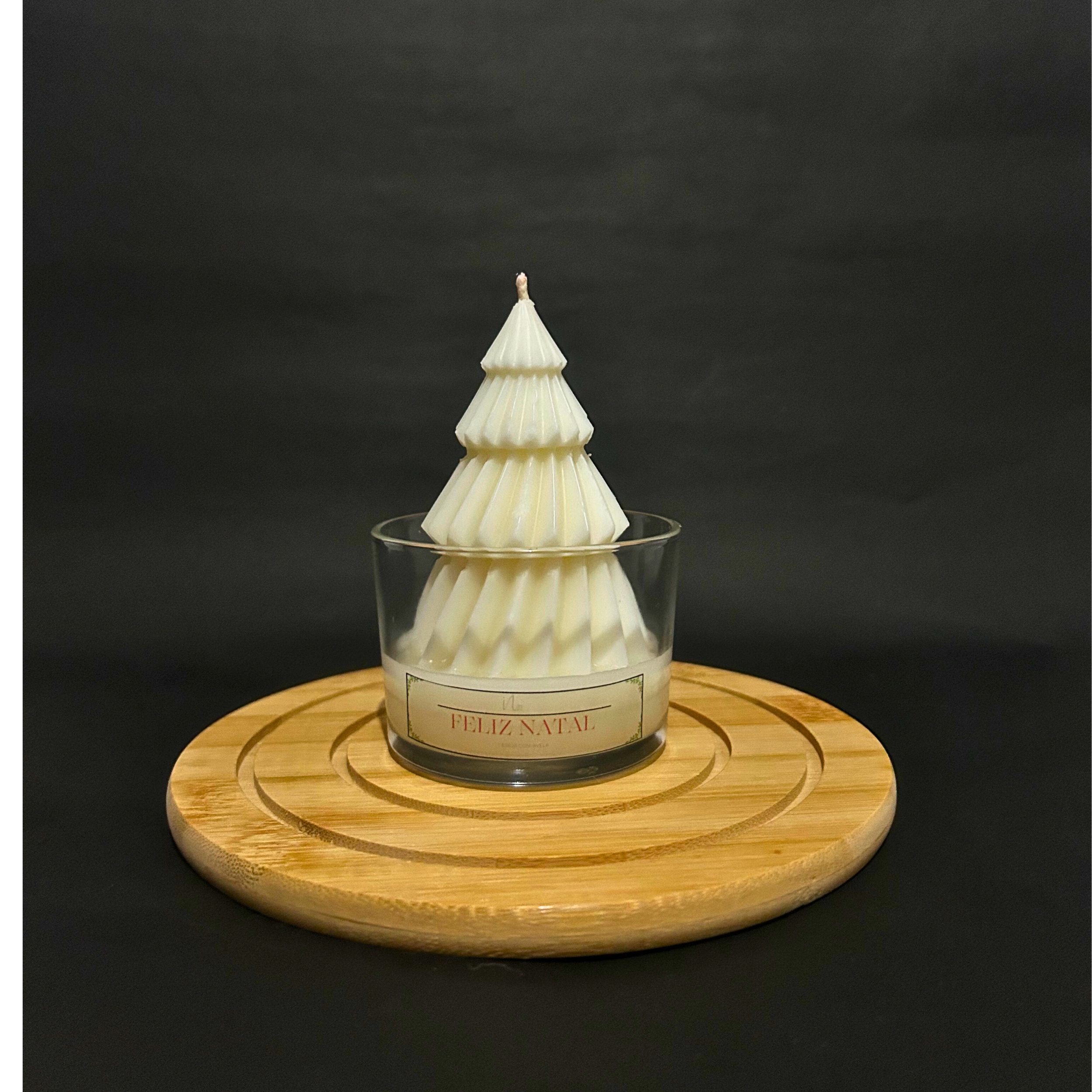 Feita à mão, a vela com decoração de árvore de Natal combina o charme do design com a delicadeza da chama. Perfeita para decorar mesas, aparadores e trazer o espírito natalino de forma elegante e minimalista.